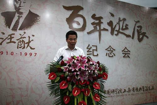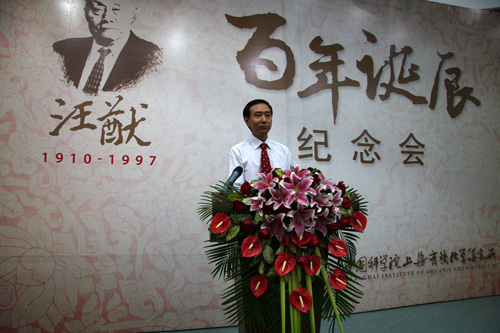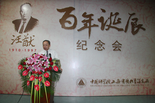 9月20日,初秋的上海阳光温煦,汪猷先生百年诞辰纪念会在中科院上海分院教育基地报告厅召开。中科院上海分院常务副院长朱志远研究员,国家自然基金委化学部常务副主任梁文平研究员,国家自然科学基金委化学科学部有机化学处处长杜灿屏研究员,北京大学张礼和院士,中科院上海生命科学院生物化学与细胞生物学研究所张友尚院士,香港中文大学副校长黄乃正院士,中科院原副秘书长钱文藻研究员等嘉宾,以及有机所的戴立信院士、陆熙炎院士、陈庆云院士、袁承业院士、林国强院士,汪猷先生的家属,有机所的老领导,老同事代表,汪猷先生的学生代表,有机所科研骨干和研究生近300多人,齐聚一堂,纪念我国著名的有机化学家和生物有机化学的一代宗师、中科院上海有机所研究员、名誉所长汪猷先生。中科院高技术局、中科院生物物理研究所、福建物质结构研究所、兰州化学物理研究所、新疆理化技术研究所等单位都发来了贺信。纪念会由有机所党委书记郏静芳主持。