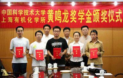 上海有机所在中国科技大学设立了“黄鸣龙奖学金”,9月20日在中国科大举行了首届颁奖仪式。姜标所长出席了颁奖仪式并为5名获奖同学颁奖。颁奖仪式由科大化学与材料科学学院副院长汪志勇主持。