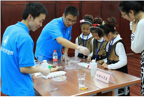 科普专题讲座结束后,来访者在志愿者的引导下分批分别参观了金属有机化学国家重点实验室、生命有机化学国家重点实验室、中国科学院天然产物有机化学重点实验室、中国科学院有机氟化学重点实验室、上海有机所高分子材料研究室和上海有机所分析化学研究室集中展示厅。各展厅通过视频、幻灯片、展板、趣味化学实验等多种形式向公众展示了各研究室所涉及的领域及化学与人类生活之间千丝万缕的联系。由各研究室研究员、职工和研究生组成的志愿者们通过耐心讲解和示范,生动地揭示了化学世界的奥妙,来访者兴趣盎然、热情高涨,化学反应过程中产生的颜色和物质形态的变化唤起了大家强烈的兴趣和好奇心。许多同学迫切地想要走进奇妙的化学世界,兴致勃勃地自己动手操作起小实验,体会其中的乐趣所在。