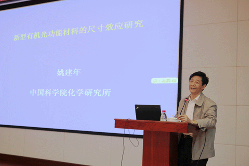 5月18日,应上海有机所交叉学科科学讲座的邀请,中国科学院化学研究所姚建年院士到上海有机所进行学术交流,并在君谋楼报告厅做了主题为“有机光功能固体的尺寸效应研究”的学术报告。林国强院士主持了讲座,所内两百余名科研人员及研究生参加了听讲。