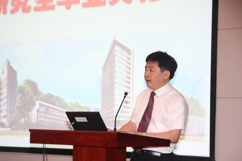 李昂研究员作为导师代表发言,他与在座的全体研究生分享了他毕业之后的科研和生活感受,寄语毕业生在今后的科研过程中要从追求技艺到追求理性,从追求理性到追求人文,从追求人文到认识自己的潜力和精神。鼓励大家在科研的道路上笃定执着,越走越远。