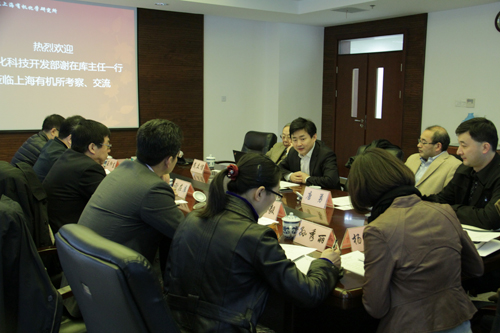 11月29日上午,中国石油化工集团公司科技开发部谢在库主任、材料处庄毅处长,上海石油化工研究院顾松园院长等一行四人访问上海有机所,与有机所领导和科研人员洽谈科技合作事宜。丁奎岭所长、唐勇副所长、戴立信院士、部分科研人员和科研管理处相关人员参加了交流会议。