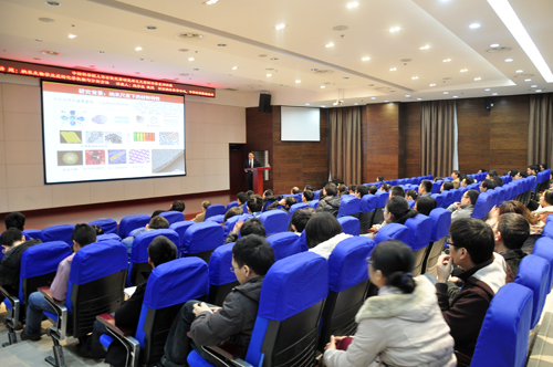 赵宇亮介绍了碳纳米材料的发展历程,以及纳米尺度下,物质的小尺寸效应、表-界面效应和量子效应等使其拥有不同于传统化学分子的独特性质,从而广泛应用在工业、农业、食品、日用品、医药等各个领域。近年来,赵宇亮教授带领的团队致力于研究纳米尺度的人造纳米材料与生物体系的相互作用过程及其对生物体的生命活动的影响,即纳米生物学(包括纳米毒理学)效应。报告讨论了人造纳米材料与生物体系在细胞和分子相互作用的结果及其化学机制,探索发生在纳米生物的复杂表/界面的化学/生物学过程及其研究方法学。赵宇亮教授的报告非常精彩,在场师生与赵教授就有关问题进行了热烈的讨论。