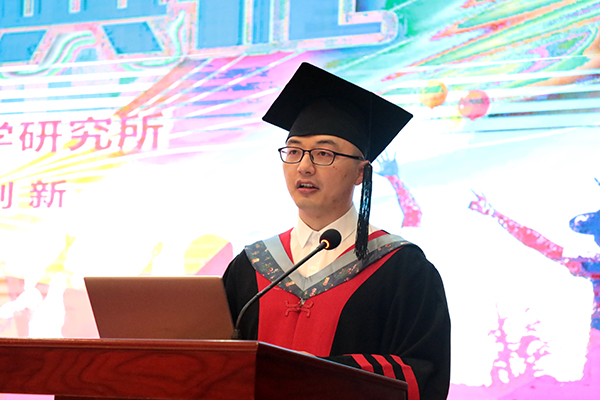 潘李锋研究员在代表全体导师的发言中说道:“在有机所的无数个日日夜夜里,你们甘于寂寞,用你们的智慧和辛勤的汗水谱写着自己的科研梦。在数不清的尝试和失败中,实践着自己的科学梦想,追寻着科学的真知。要感恩我们的祖国,感恩党和国家为我们创造的这个和平繁荣的时代,使我们可以享受着世界上一流的科研条件,开展世界前沿的科学研究,使我们有可能实现自己的科研梦。要感恩有机所老一辈科学家们,正是他们几代人的努力和几十年的积淀才有有机所的今天,他们是有机所的基石、更是有机所永存的精神支柱。老一辈科学家那种“脚踏实地、勇于挑战、追求卓越、开拓创新”的有机所精神永远值得我们铭记在心,并时刻激励和指引着我们每一个“有机所人”前行。”