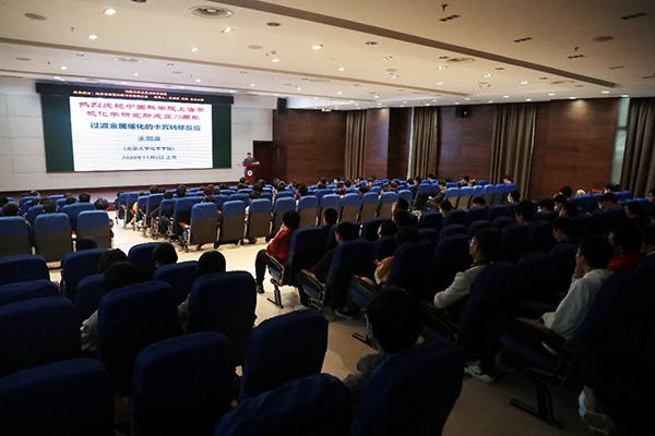 王剑波教授首先从卡宾的起源和基本概念说起,系统讲解了卡宾化学的相关知识,之后介绍了其研究团队在过渡金属催化的卡宾转移反应方面的研究进展。王剑波教授提出,基于卡宾过程的交叉偶联是在最近十余年才发展起来的一类反应,它将交叉偶联和卡宾化学相结合,在反应中通过形成金属卡宾中间体,进而发生基团迁移以及后续的不同过程,完成卡宾转移反应。该反应可以构建一系列结构新颖的化合物,其独特的碳碳键构筑新方法,为传统的卡宾化学领域注入了新的活力。在报告的最后,王剑波教授指出,利用卡宾转移反应进行C1聚合在高分子化合物的高效合成方面有着很好的发展前景。