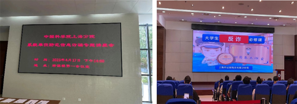 为进一步强化师生识别和防范电信网络诈骗的能力,切实守护师生权益。4月17日下午2:00,安全管理办公室协同办公室、研究生部,组织我所学生、安全员、支部书记等,以视频形式参加了中科院上海分院组织的防范电信诈骗专题讲座会。