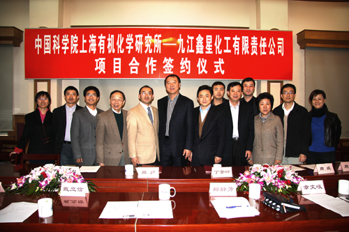 2010年11月15日,中科院上海有机所与九江鑫星化工有限责任公司超高分子量聚乙烯项目合作签约仪式在上海有机所长恭厅举行。中科院上海分院章文峻副处长,上海有机所丁奎岭所长、郏静芳书记、唐勇副所长、戴立信院士、财务处和科研处部门负责人及研发团队成员,鑫星化工周庐董事长、周威总经理、黄家超副总经理及周青业务经理出席了签约仪式。签约仪式由郏静芳书记主持。