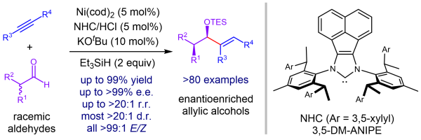 图 动态动力学不对称醛-炔还原偶联反应