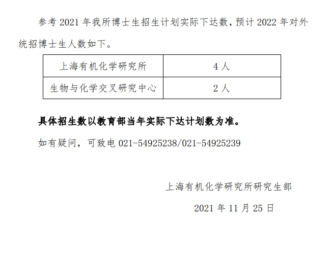 上海有机所2022年预计对外招收博士研究生人数
