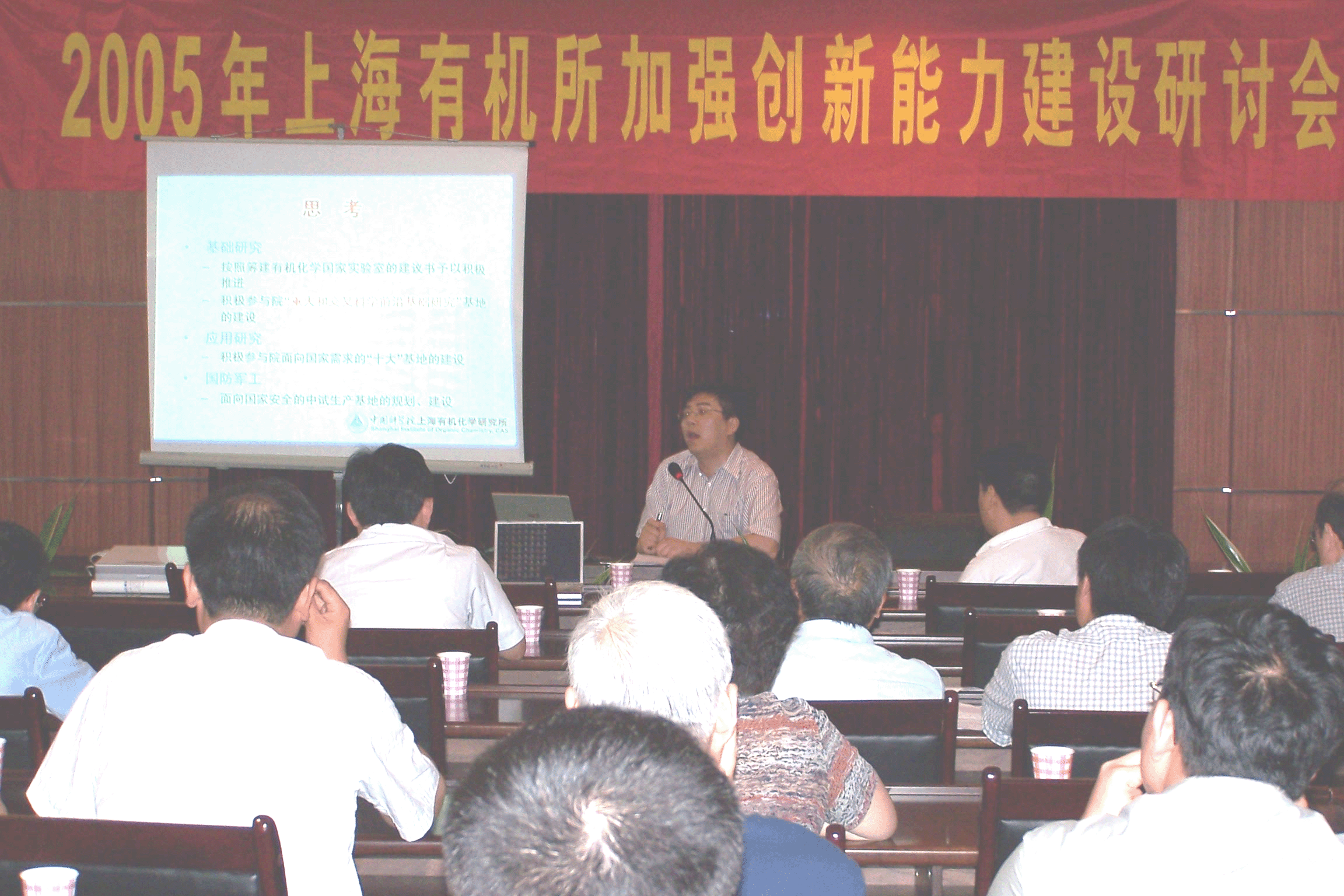 2005年6月25-27日,上海有机所在杭州召开了“2005年上海有机所加强创新能力建设研讨会”。所党政领导、院士、课题组长、管理与服务部门负责人等所的科研骨干和管理骨干共52人参加了会议。