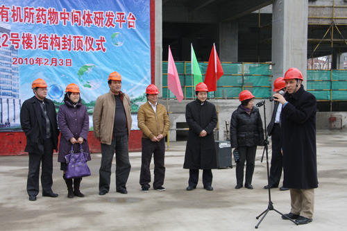 有机所药物中间体研发平台(综合实验2号楼)自2009年3月31日开工以来,各项工作进展顺利,质量、安全、进度、文明施工等各个方面,都取得了较好的效果,为此丁奎岭所长对上海第一建筑公司的领导、现场指挥人员及全体建设者,对他们的敬业精神和高度负责的工作态度,以及辛勤付出再次表示了衷心地感谢!