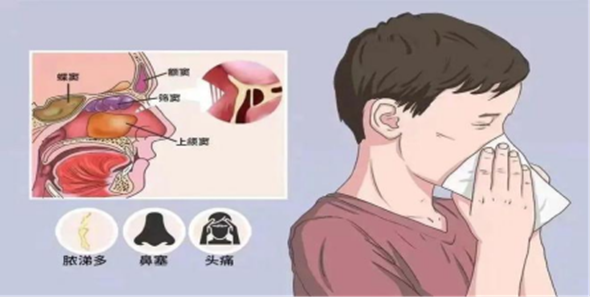 3. 鼻窦炎:多由细菌感染引起,症状包括鼻塞、流脓涕、头痛、嗅觉减退等,严重时可引发眼眶、颅内并发症。